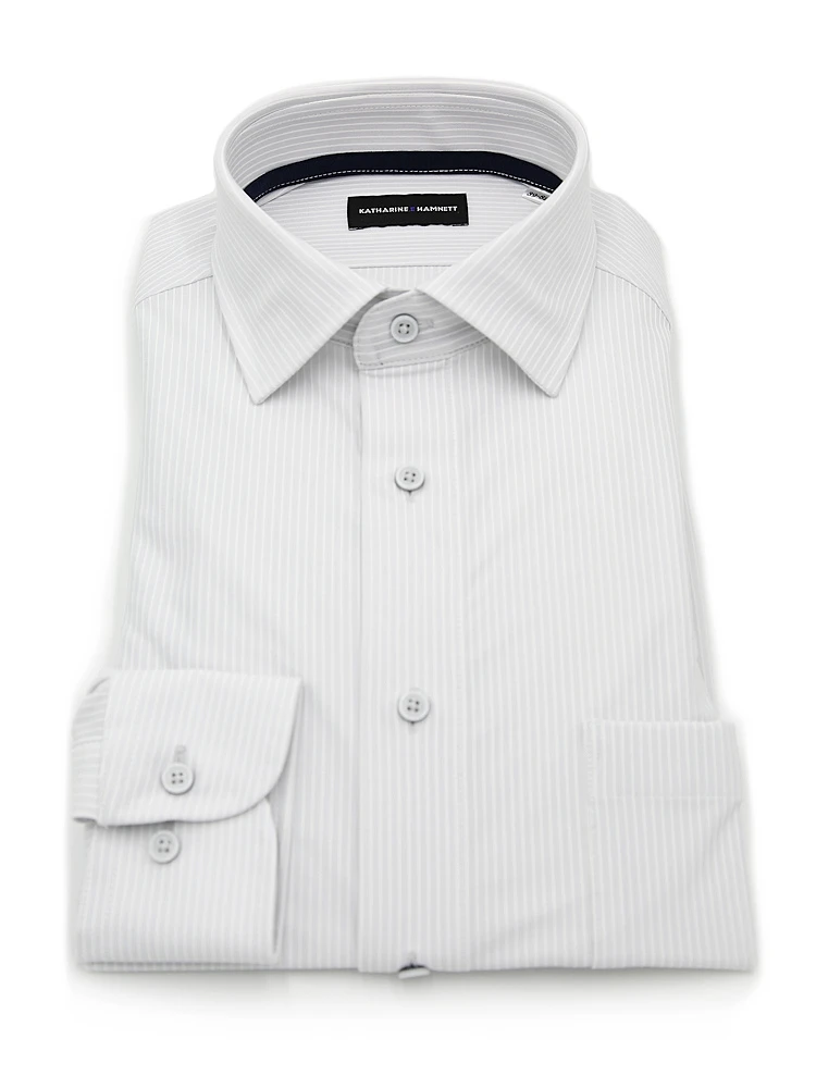 【KATHARINEEHAMNETT-キャサリン・イー・ハムネット-】長袖ワイシャツセミワイド360°ストレッチ吸水速乾ストライプ通年
