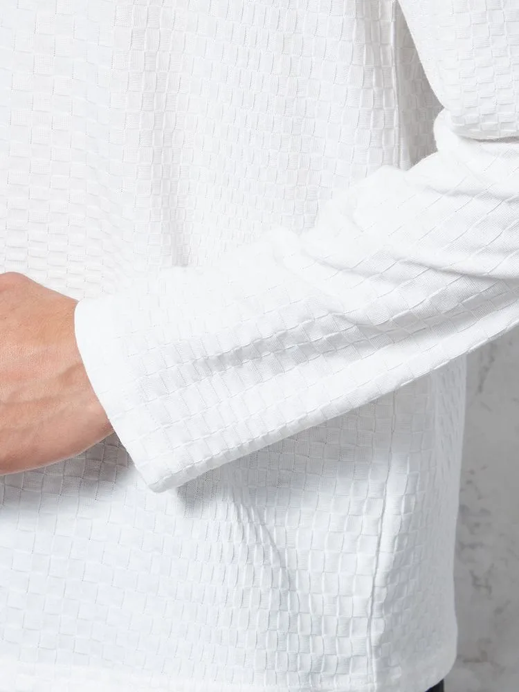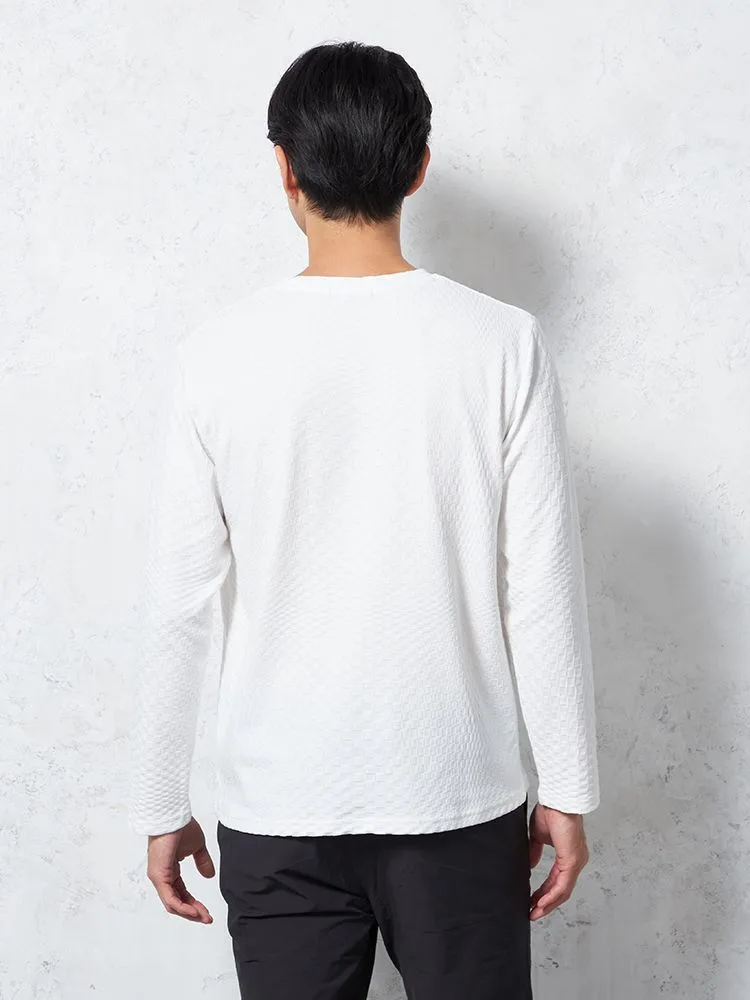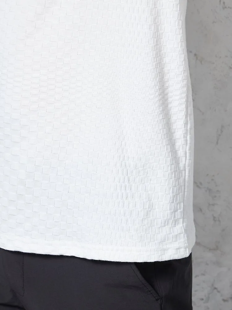 格子状の凹凸がある表情豊かな生地を使用したTシャツ。