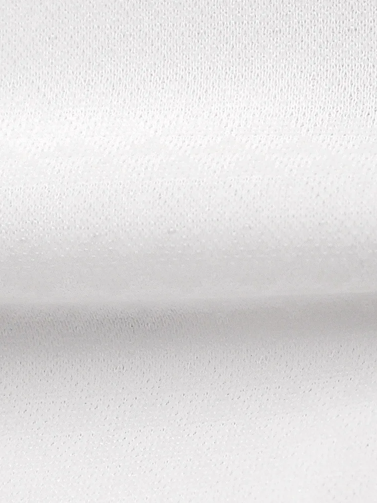 こだわりの日本製生地はソフトなポリエステルニットで、スポーツウェア等にも使われる高機能素材。体の動きに合わせて生地が伸び縮みする高いストレッチ性が特徴で、動作時の負荷が少なく着用ストレスも軽減します。