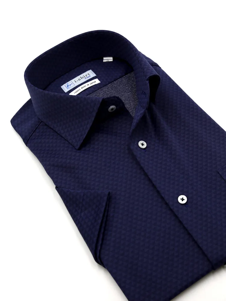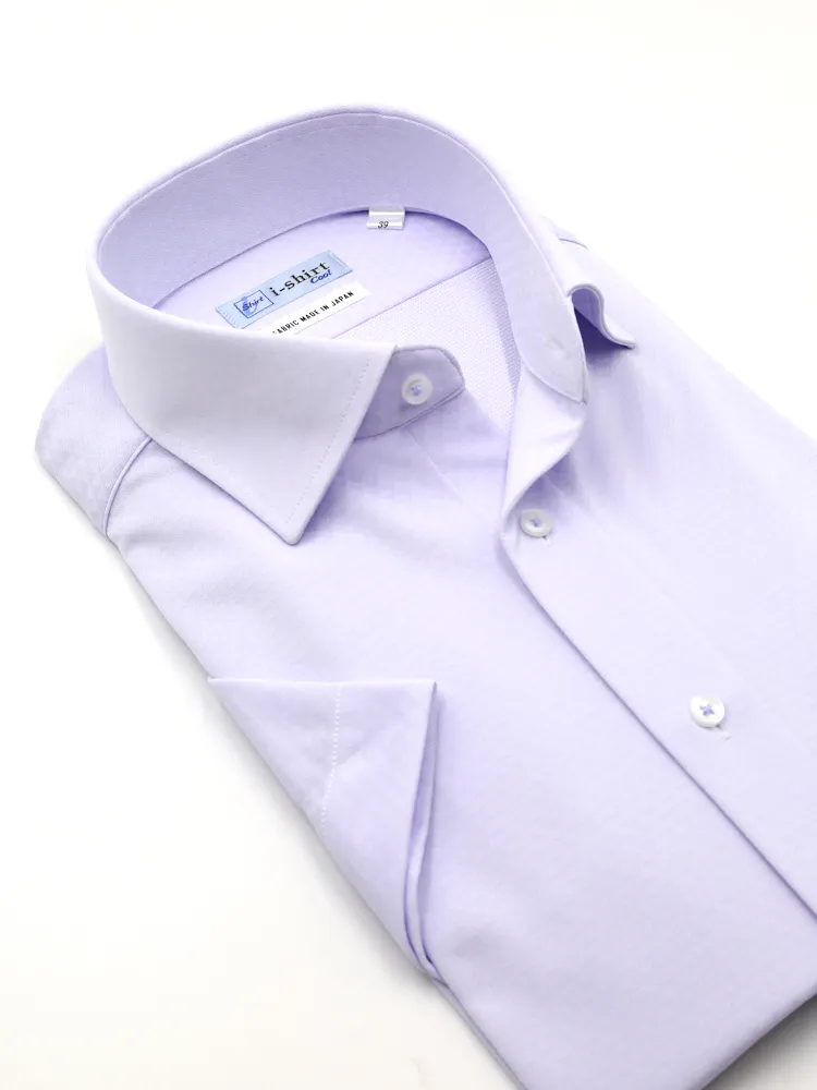 【完全ノーアイロン】半袖アイシャツセミワイド【バイオセンサークール生地使用】高通気冷感シャドウストライプ織柄無地ワイシャツi-shirt春夏