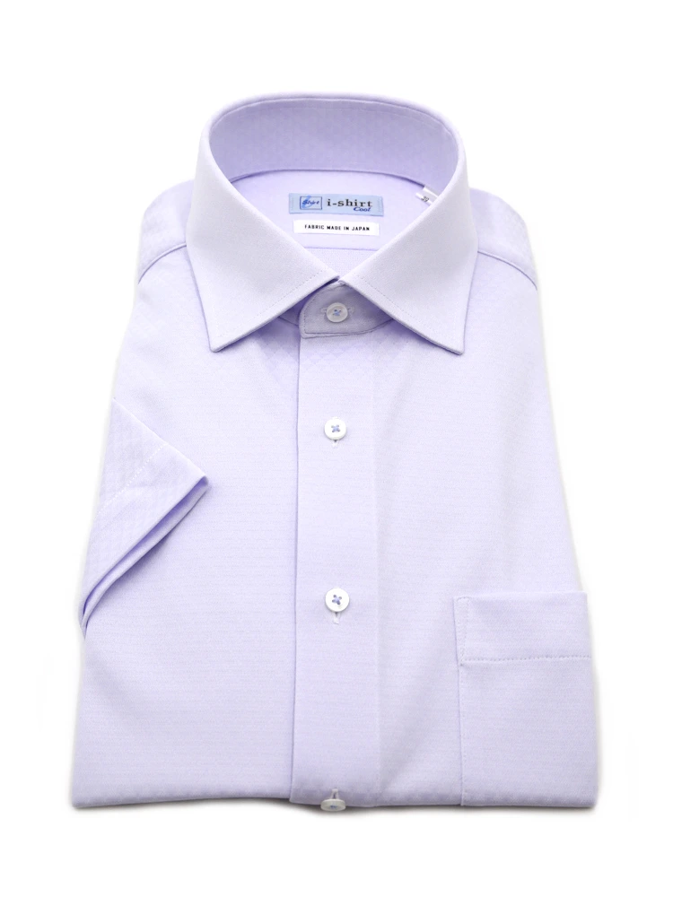 【完全ノーアイロン】半袖 アイシャツ セミワイド【バイオセンサークール生地使用】吸湿冷感 高通気 織柄無地 ワイシャツ i-shirt 春夏(ホワイト)