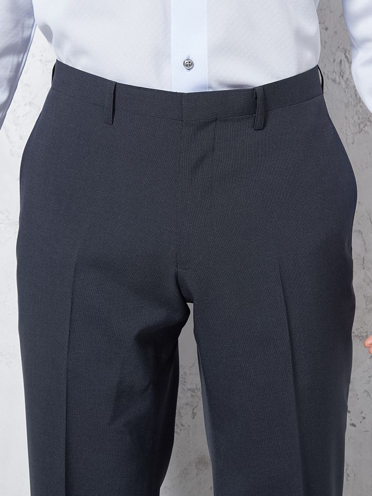 【ウォッシャブル】パンツ ノータック ツイル柄 チェック nero【スリムデザイン】