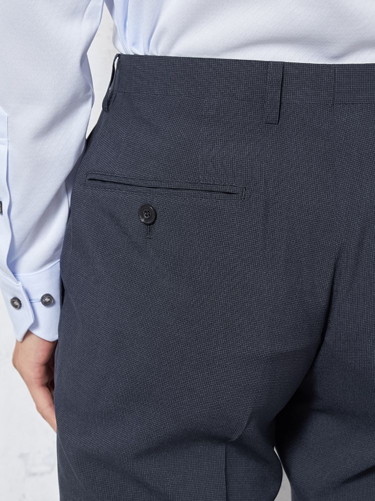 さりげない表情が魅力のピンヘッド柄に、脚が長く見えるスタイリッシュな印象のシルエットです。