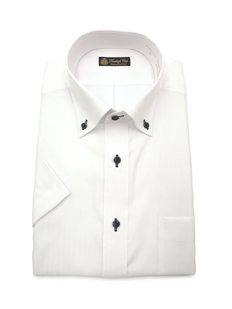 【形態安定】半袖 ワイシャツ ボタンダウン 白ドビー 織柄無地 ハントレークラブ 春夏