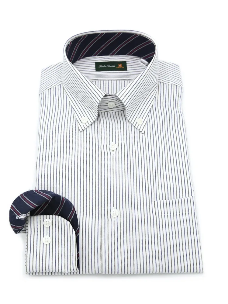 【高形態安定】長袖ワイシャツボタンダウンマルチファンクションシャツストライプリッケンバッカー通年