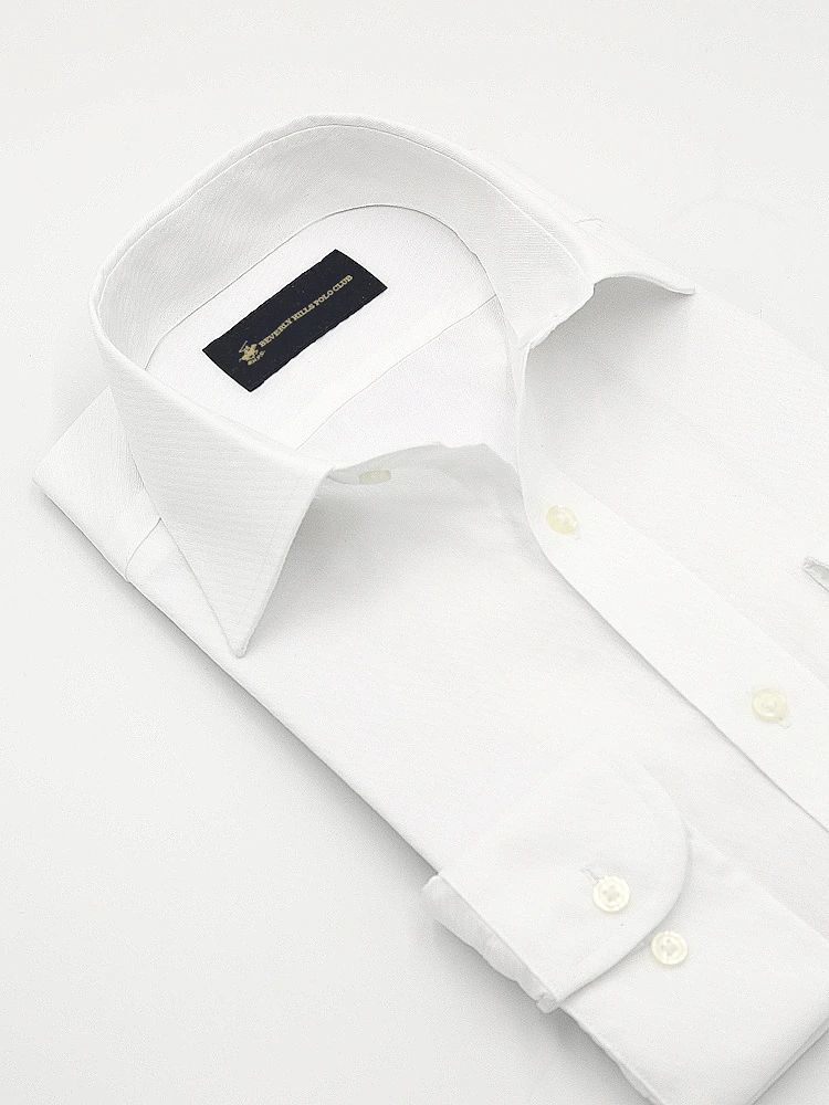 【形態安定】長袖ワイシャツ セミワイド 白ドビー 織柄無地 ビバリーヒルズポロクラブ 通年