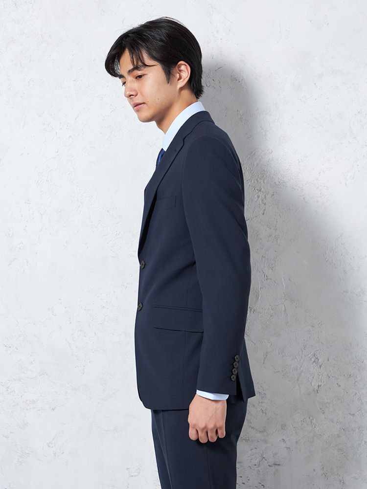 ジャケットは2つボタン×ノッチドラペルを採用。
