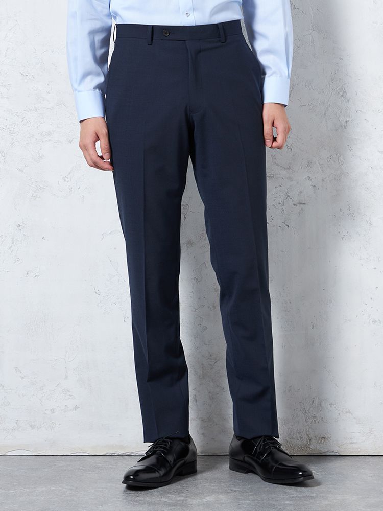 【パンツウォッシャブル】スリーピーススーツ 2つボタン 背抜き ノータック ネイビー 千鳥格子 S&M BLUE LABEL