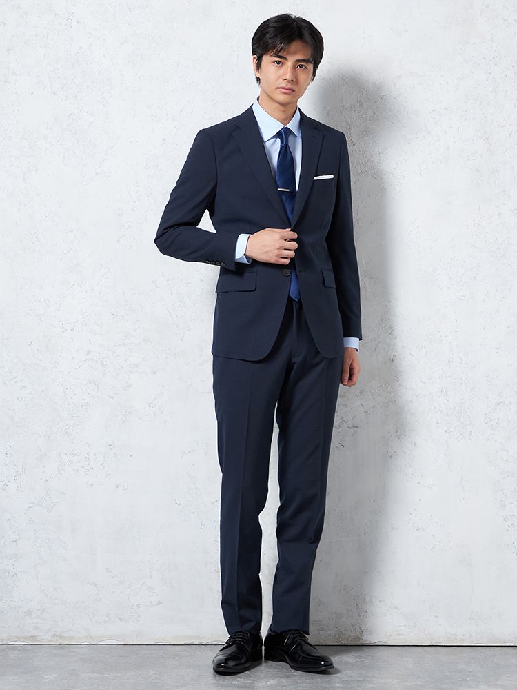 【即納】【WEB限定】スーツ2つボタンネイビーシャドウストライプ上下ウォッシャブル3シーズン対応