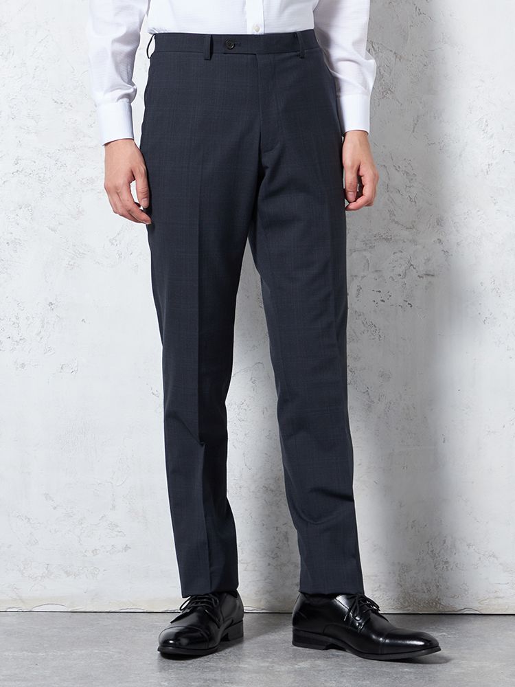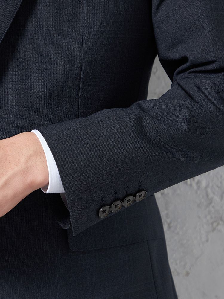 【パンツウォッシャブル】スリーピーススーツ 2つボタン 背抜き ノータック ネイビー 千鳥格子 S&M BLUE LABEL