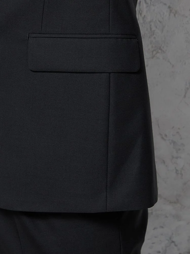 [礼服]【ワンタック】フォーマル2つボタンサマーフォーマルウール混黒無地チェスターバリー春夏礼服