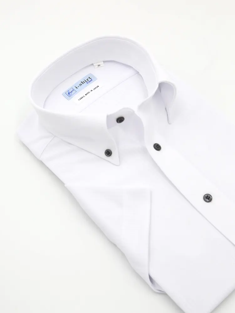 【完全ノーアイロン】半袖アイシャツボタンダウン【アイスライブ生地使用】吸湿冷感シャークスキンi-shirtワイシャツ春夏