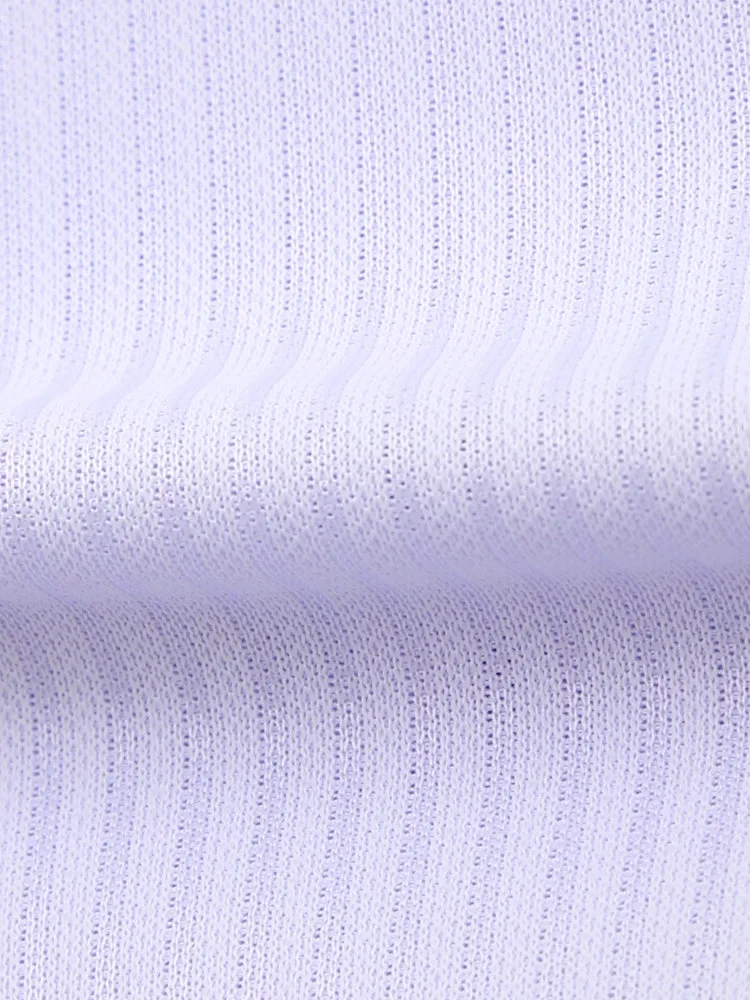 こだわりの日本製生地はソフトなポリエステルニットで、スポーツウェア等にも使われる高機能素材。体の動きに合わせて生地が伸び縮みする高いストレッチ性が特徴で、動作時の負荷が少なく着用ストレスも軽減します。