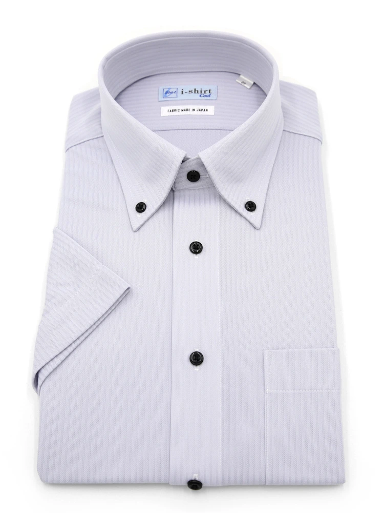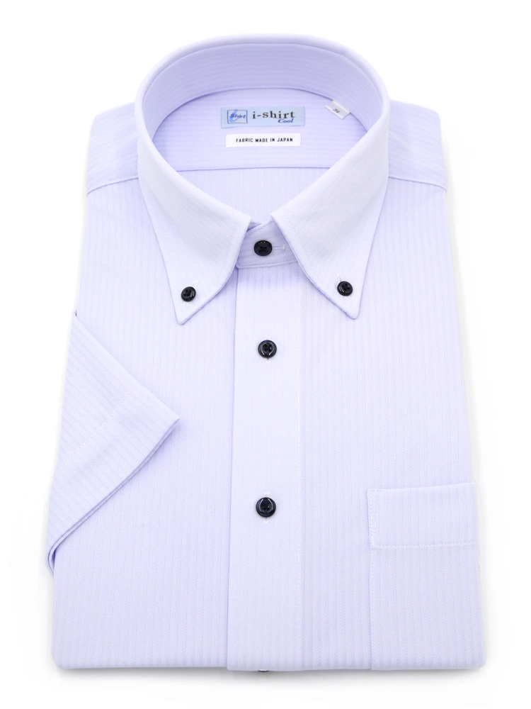 【完全ノーアイロン】半袖アイシャツボタンダウン【アイスライブ生地使用】吸湿冷感ストライプi-shirtワイシャツ春夏