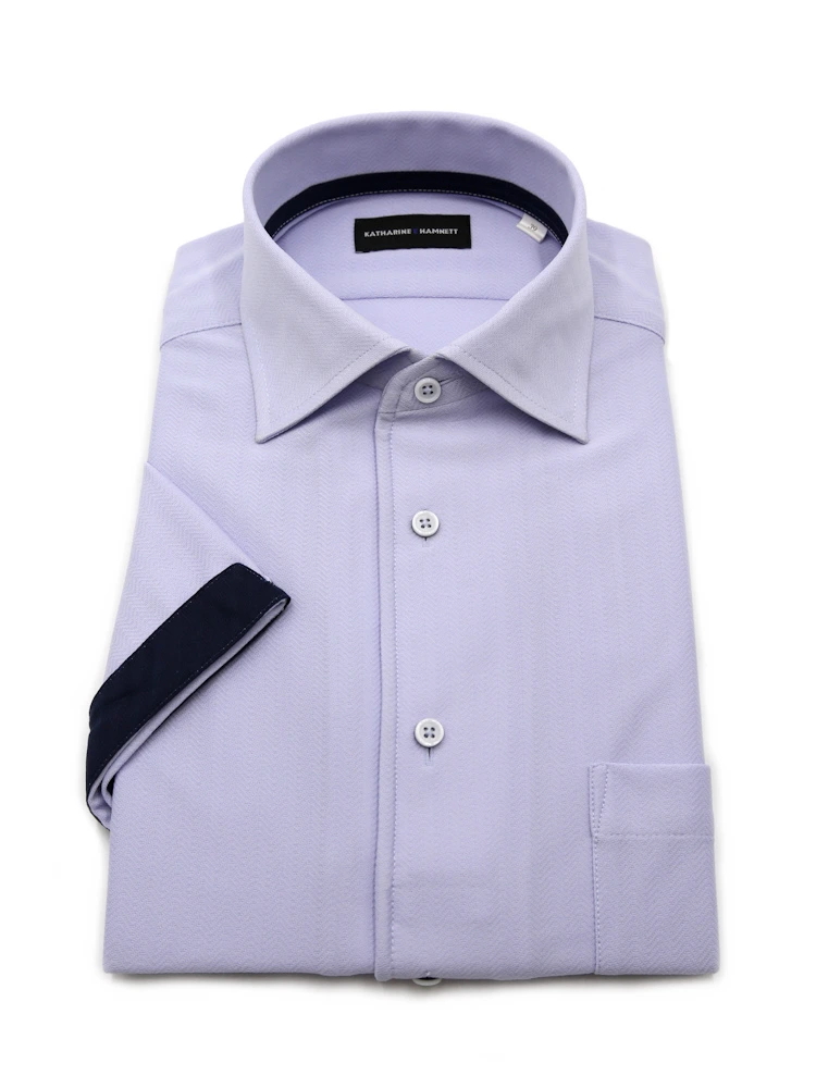 【KATHARINEEHAMNETT-キャサリン・イー・ハムネット-】半袖ワイシャツワンピースカラーセミワイド360°ストレッチ吸水速乾へリンボン通年