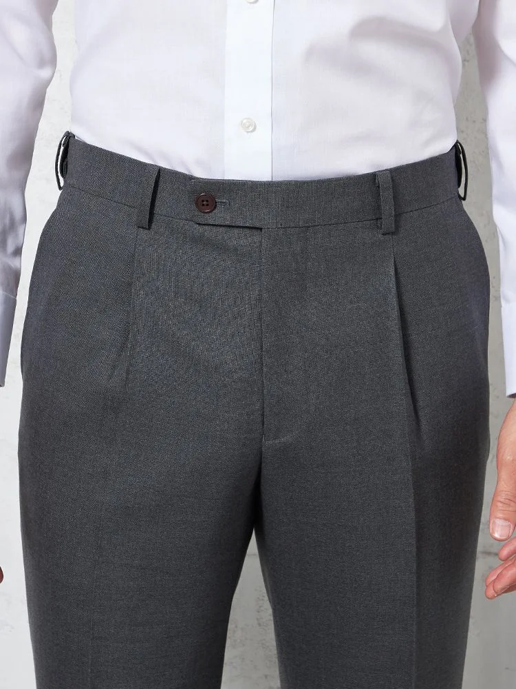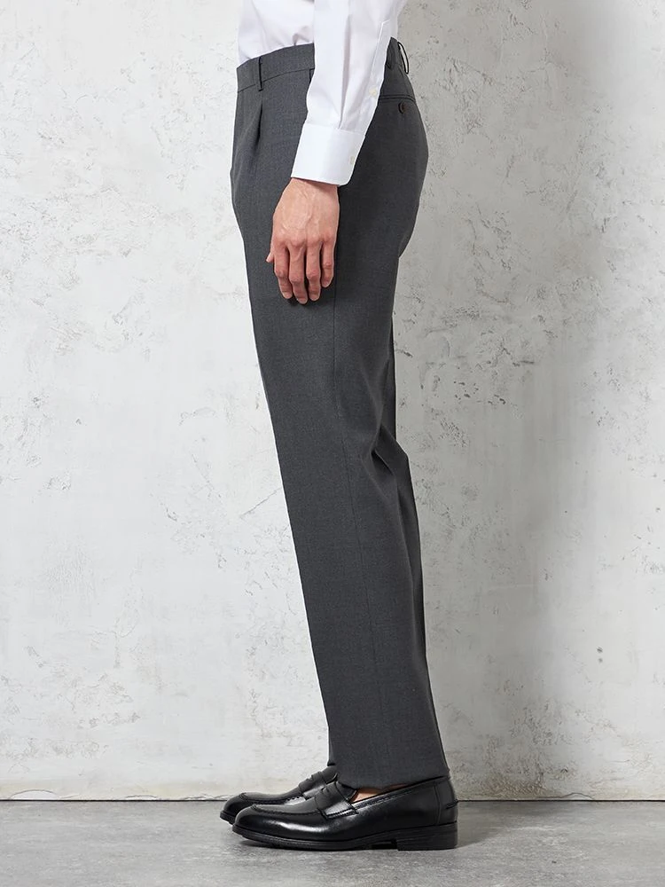 【ウール100%】パンツ ワンタック イタリア マルラーネ社製生地 グレー 無地 RUCKEN BACCHAR