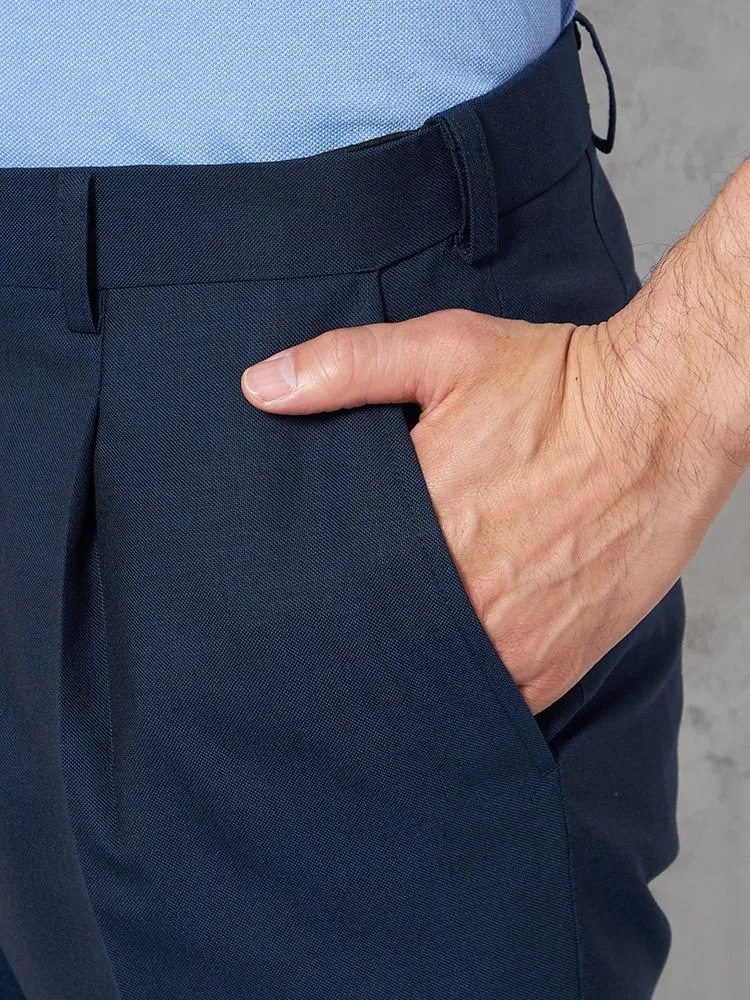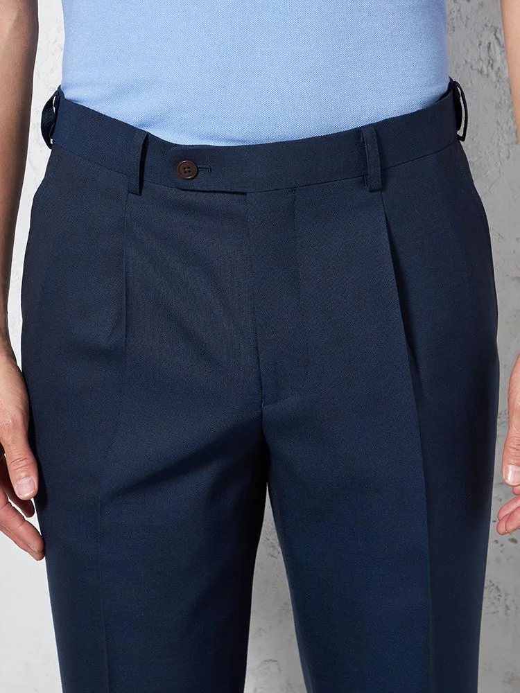 【ウール100%】パンツ ワンタック イタリア マルラーネ社製生地 ネイビー 無地 RUCKEN BACCHAR
