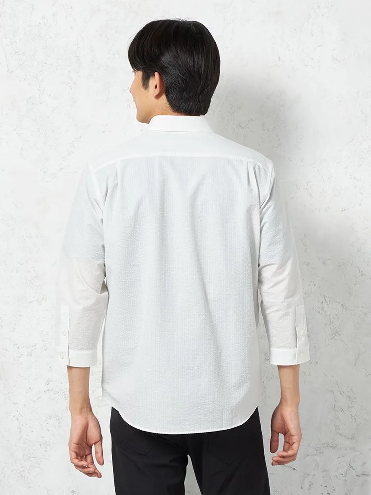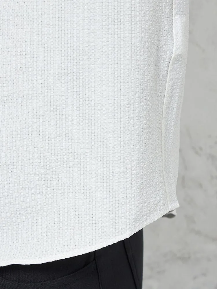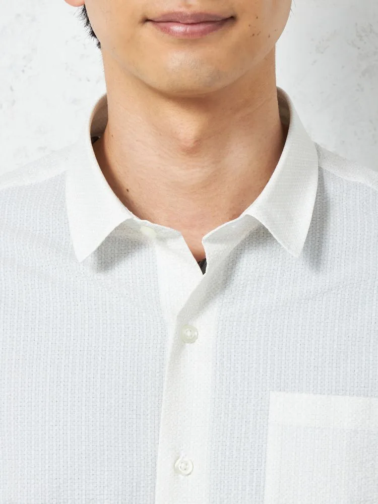 凹凸のある独特の素材感が特徴的な七分袖シャツ。