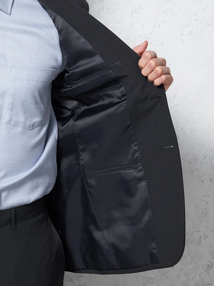【即納】【WEB限定】スーツ2つボタンブラックシャドウストライプ上下ウォッシャブル3シーズン対応