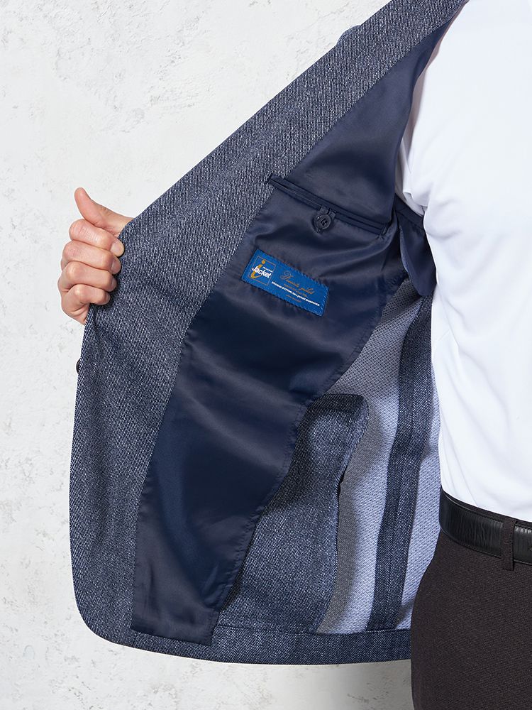 【i-Jacket-アイジャケット-】トリコットメッシュプリントジャケット 2つボタン ストレッチ 高通気 軽量 ブルー 無地 春夏