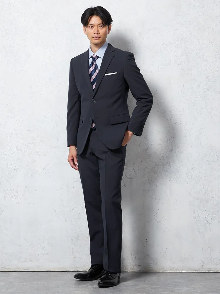 【即納】スーツ 2つボタン【WEB限定】4WAYストレッチ 織柄 チャコールグレー 通年
