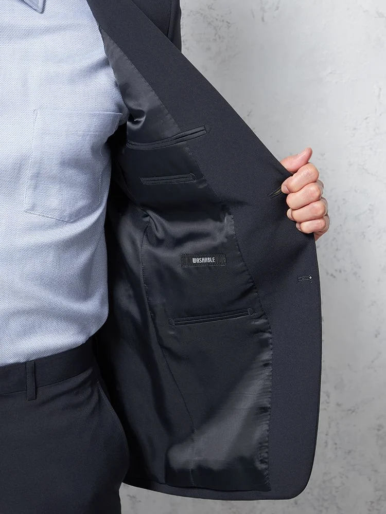 切り込みが1本のセンターベントデザインです。細身でスッキリとしたシルエットが特徴で、快適な着心地を提供します