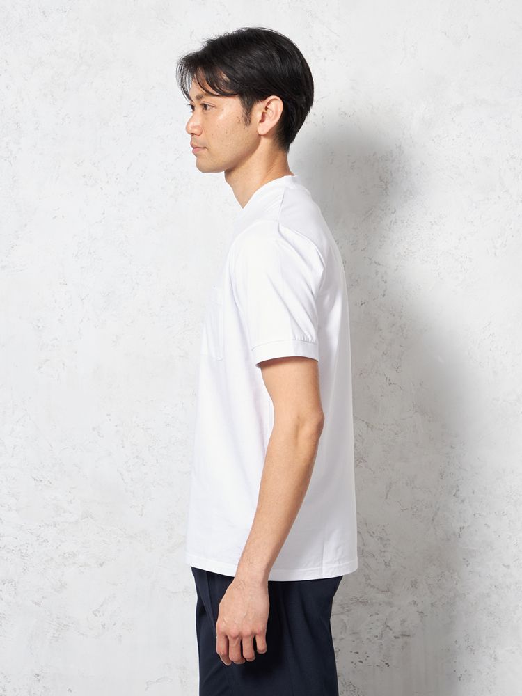【冷感】半袖 スロープネックTシャツ カジュアルインナー 無地 TOKYO RUN 春夏(ホワイト)