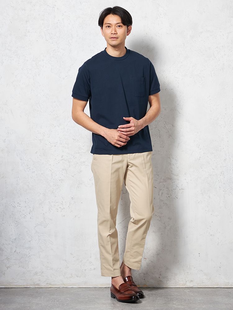 ジャケットに合わせやすいスロープネック仕様のためビジカジスタイルにも最適です。