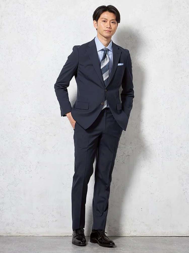 【即納】【WEB限定】スーツ2つボタンネイビーシャドウストライプ上下ウォッシャブル3シーズン対応