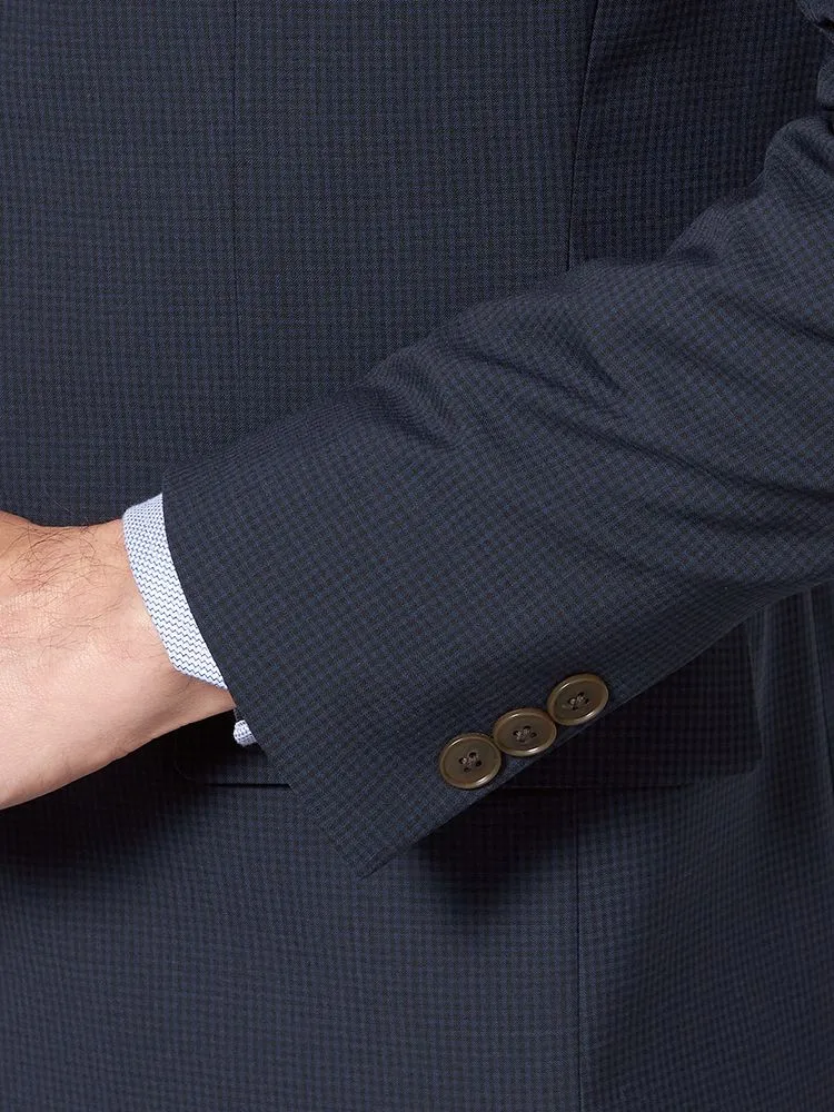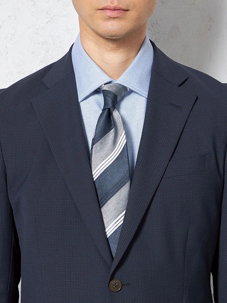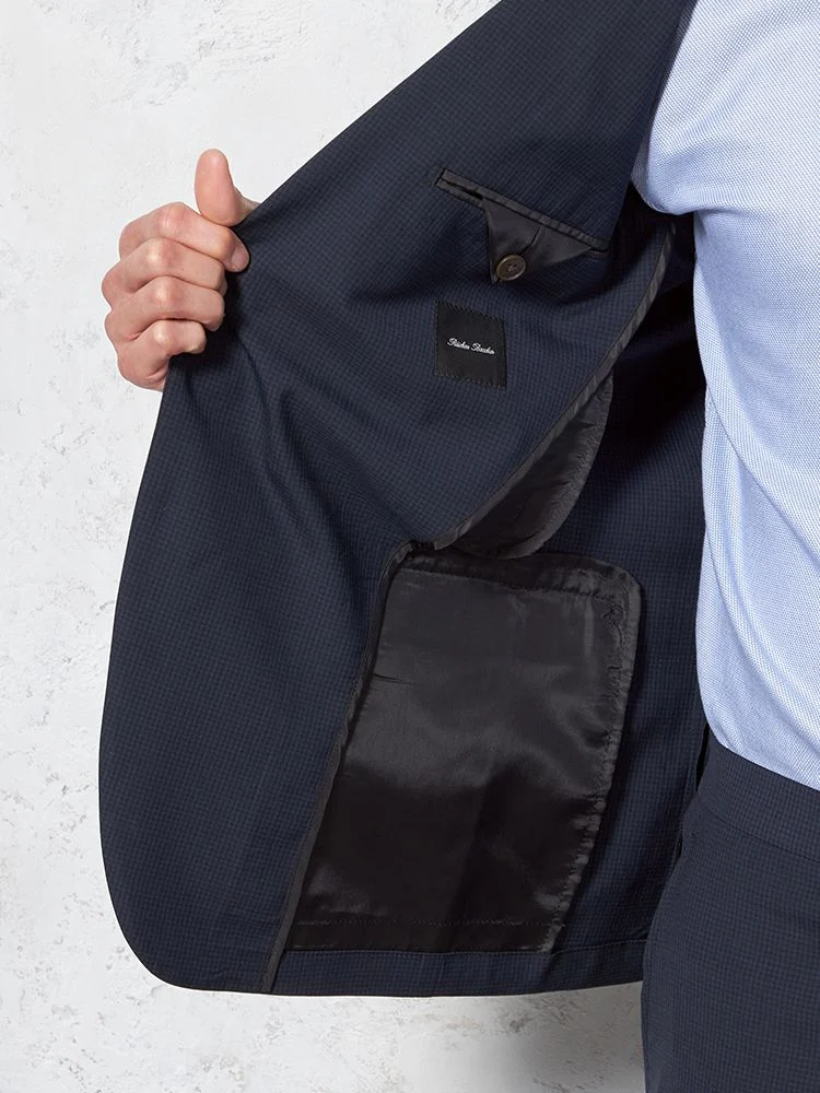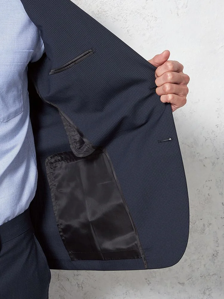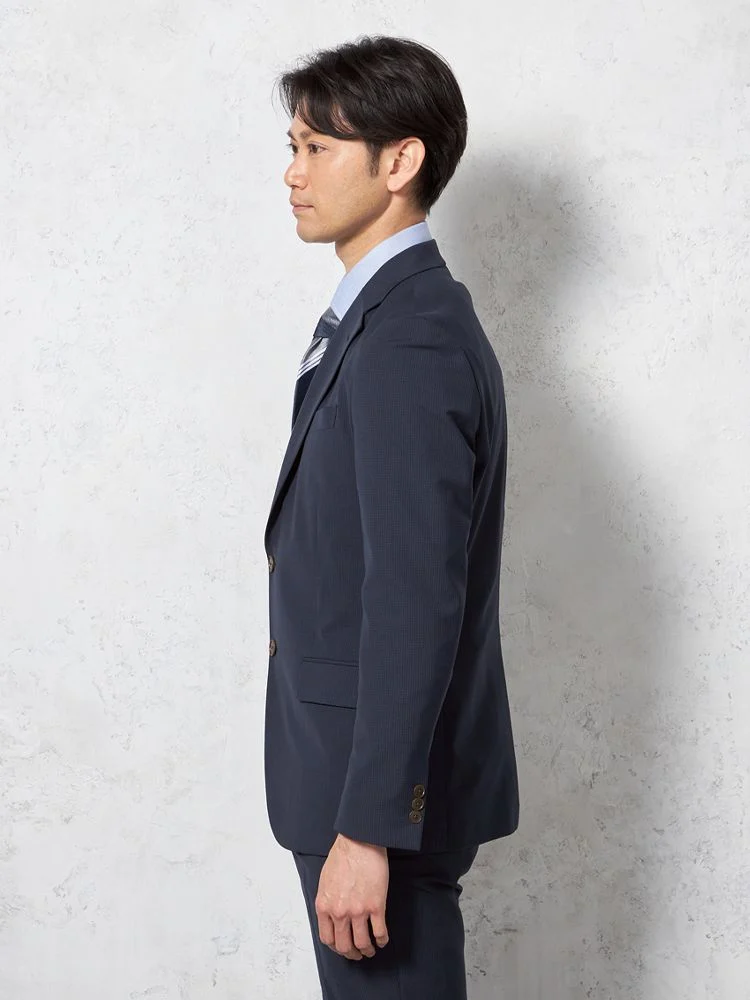 【超軽量】スーツ 2つボタン 接触冷感 上下ウォッシャブル ネイビー マイクロチェック リッケンバッカー 春夏