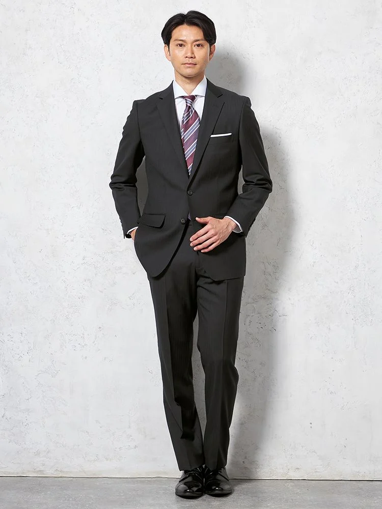 【即納】【WEB限定】スーツ2つボタンシャドウストライプ上下ウォッシャブル3シーズン対応