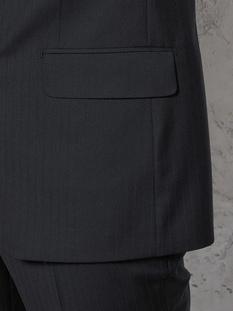 切り込みが1本のセンターベントデザインです。細身でスッキリとしたシルエットが特徴で、快適な着心地を提供します