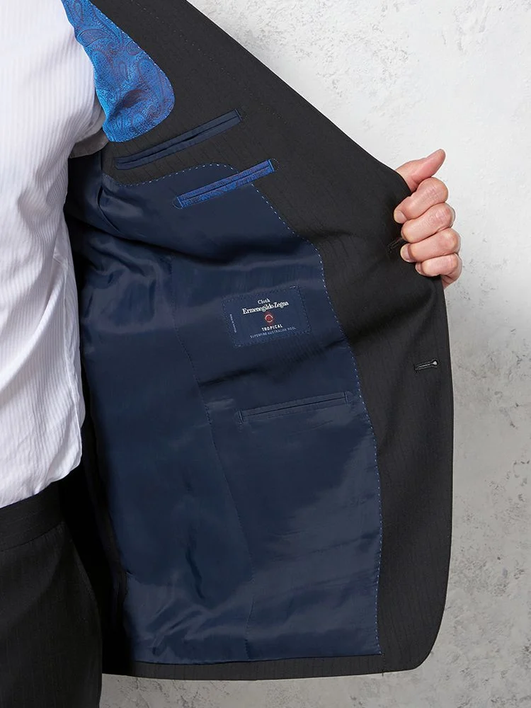 【イタリア製高級生地使用(ゼニア)】スーツ 2つボタン ウール100% シャドウストライプ STOVEL&MASON(ブラック)
