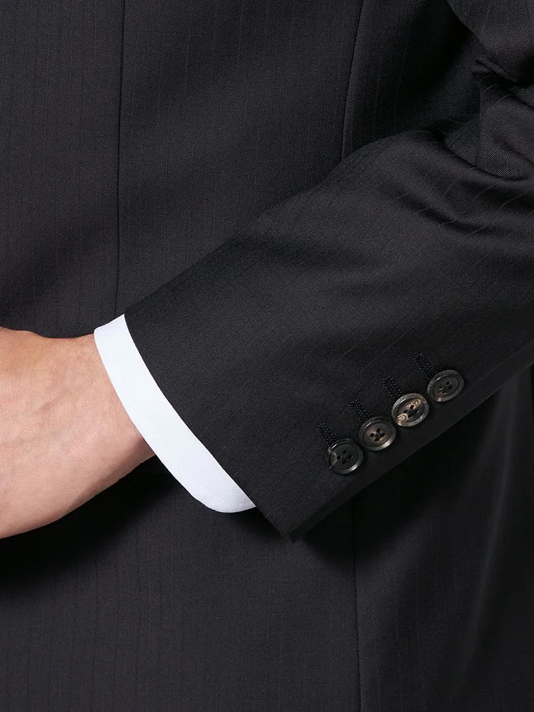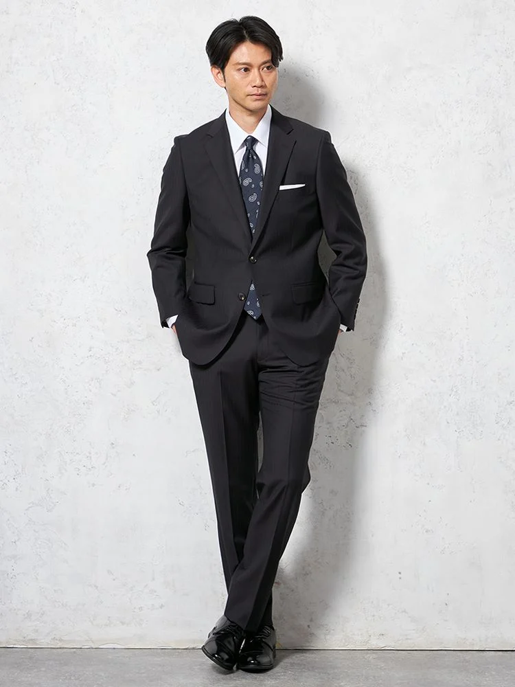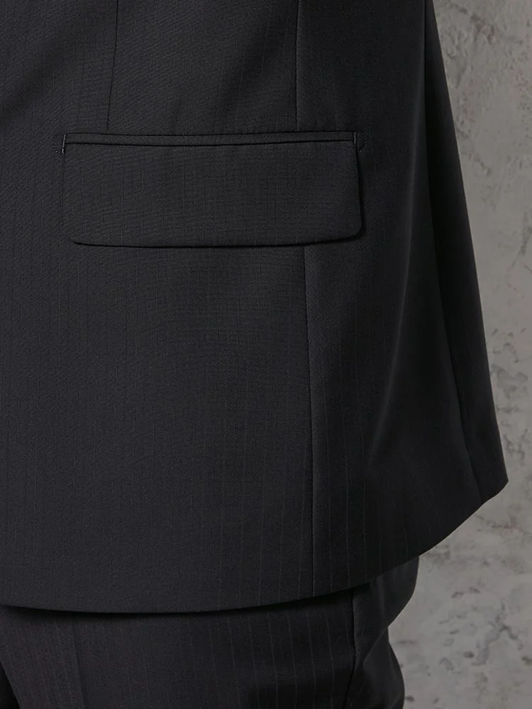 【即納】【WEB限定】スーツ2つボタンブラックシャドウストライプ上下ウォッシャブル3シーズン対応