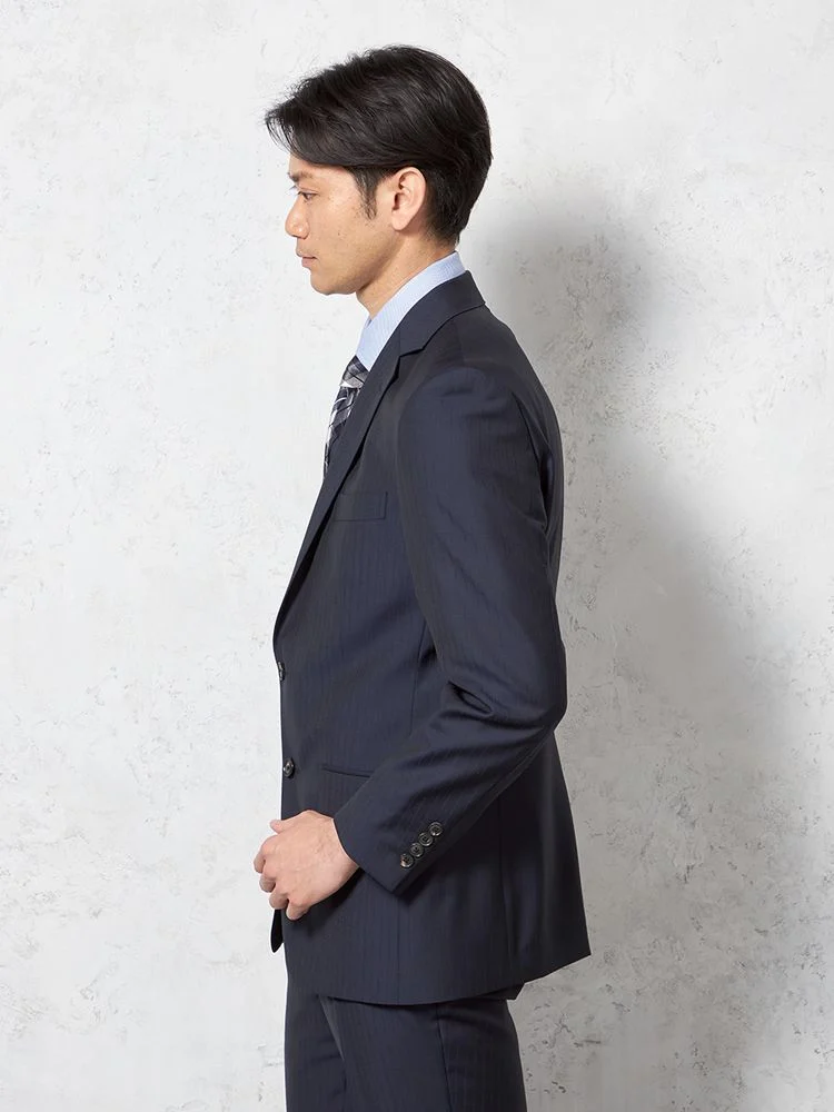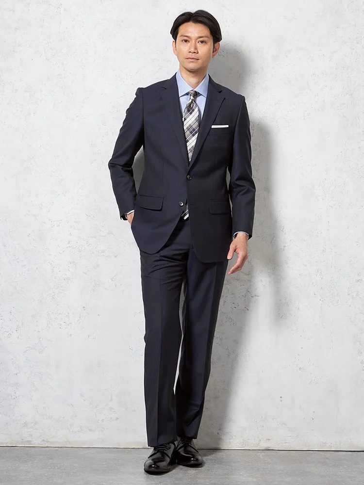 【即納】【WEB限定】スーツ2つボタンネイビーシャドウストライプ上下ウォッシャブル3シーズン対応