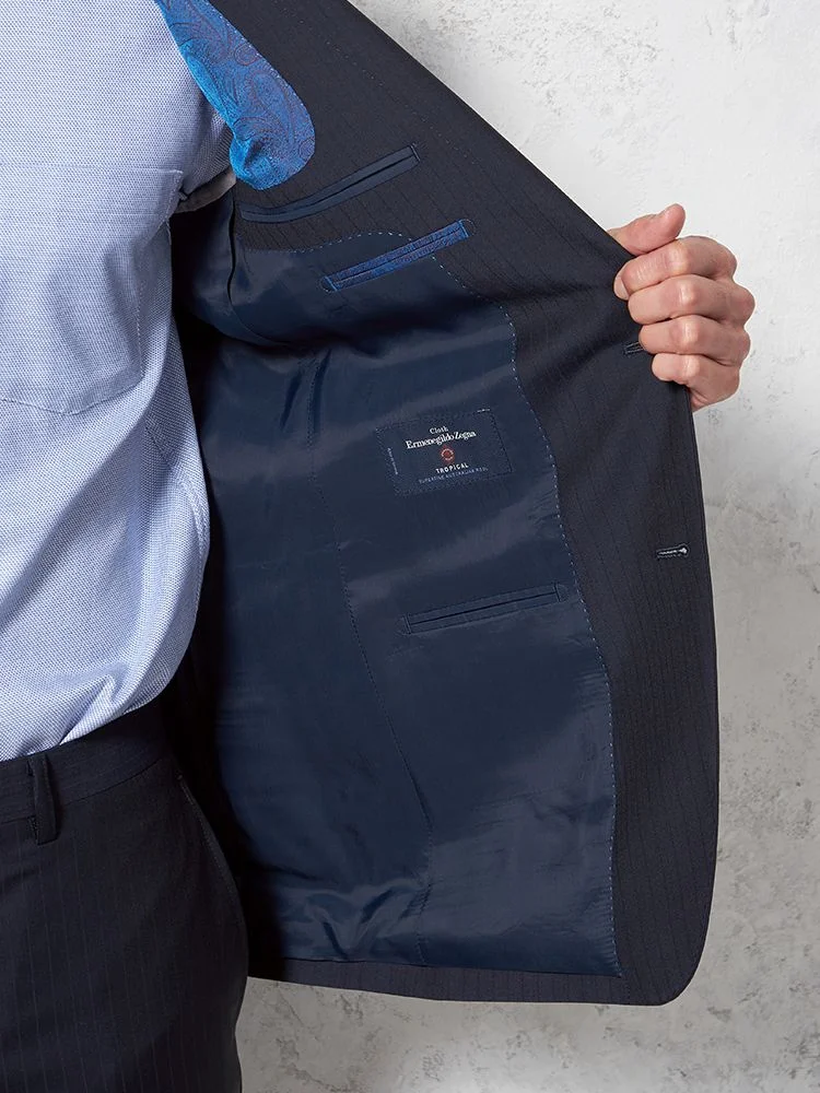 【ウール100%】スーツ 2つボタン 英国製素材【JOHN FOSTER】ネイビー シャドウストライプ STOVEL&MASON