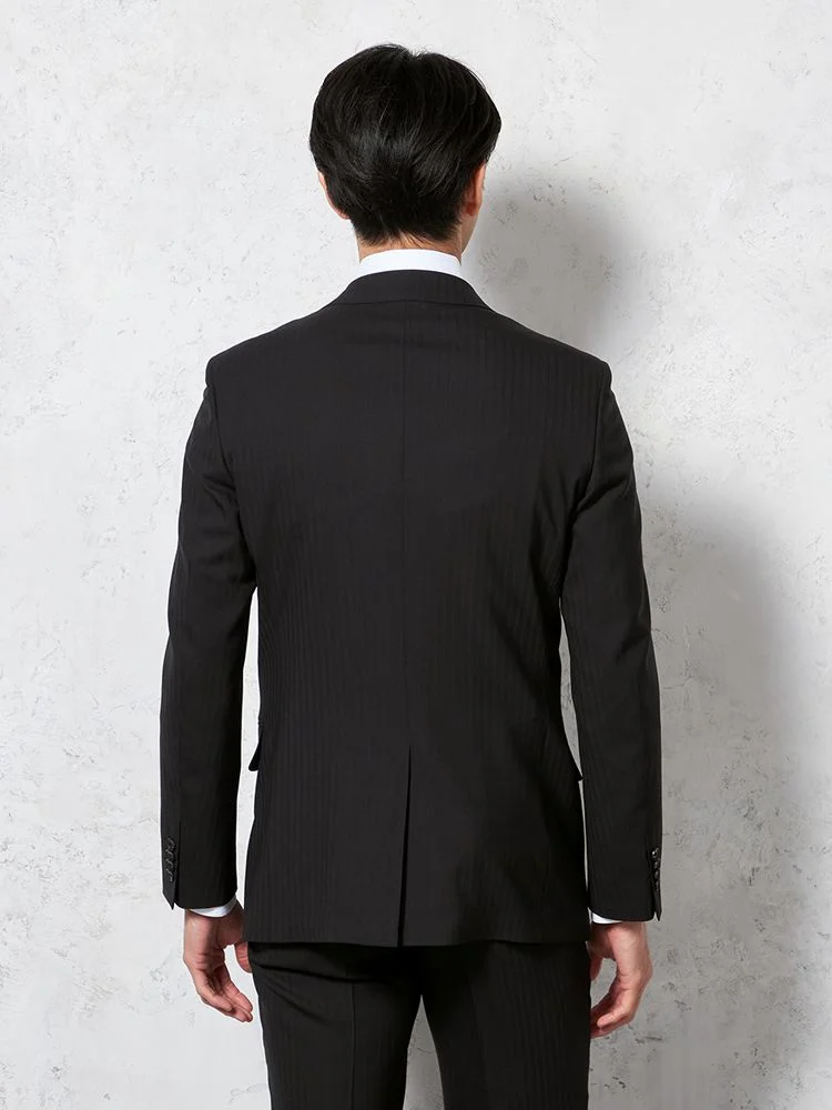【即納】【WEB限定】スーツ2つボタンブラックシャドウストライプ上下ウォッシャブル3シーズン対応