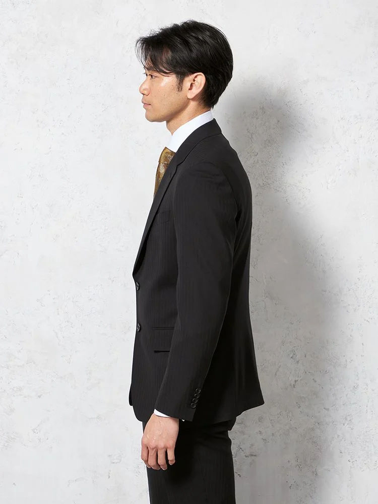 切り込みが1本のセンターベントデザインです。細身でスッキリとしたシルエットが特徴で、快適な着心地を提供します