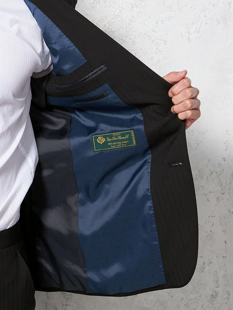 【ウール100%】スーツ 2つボタン 英国製素材【JOHN FOSTER】ブラック シャドウストライプ STOVEL&MASON