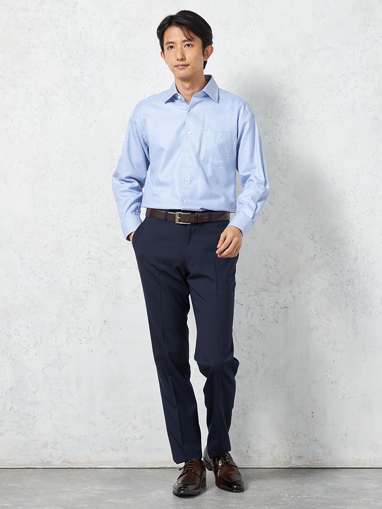 パンツの腰回りに生地の折り込みがなく、スッキリとしたシルエットを実現します。シンプルで洗練された印象を与え、すっきりとした着こなしが可能です。
