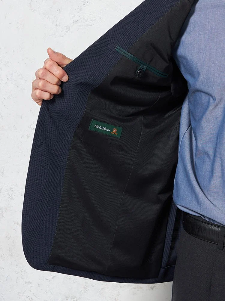 【ストレッチ】ジャケット2つボタンTOLLEGNO社生地使用キュプラ裏地グレンチェックS&MBLUELABEL