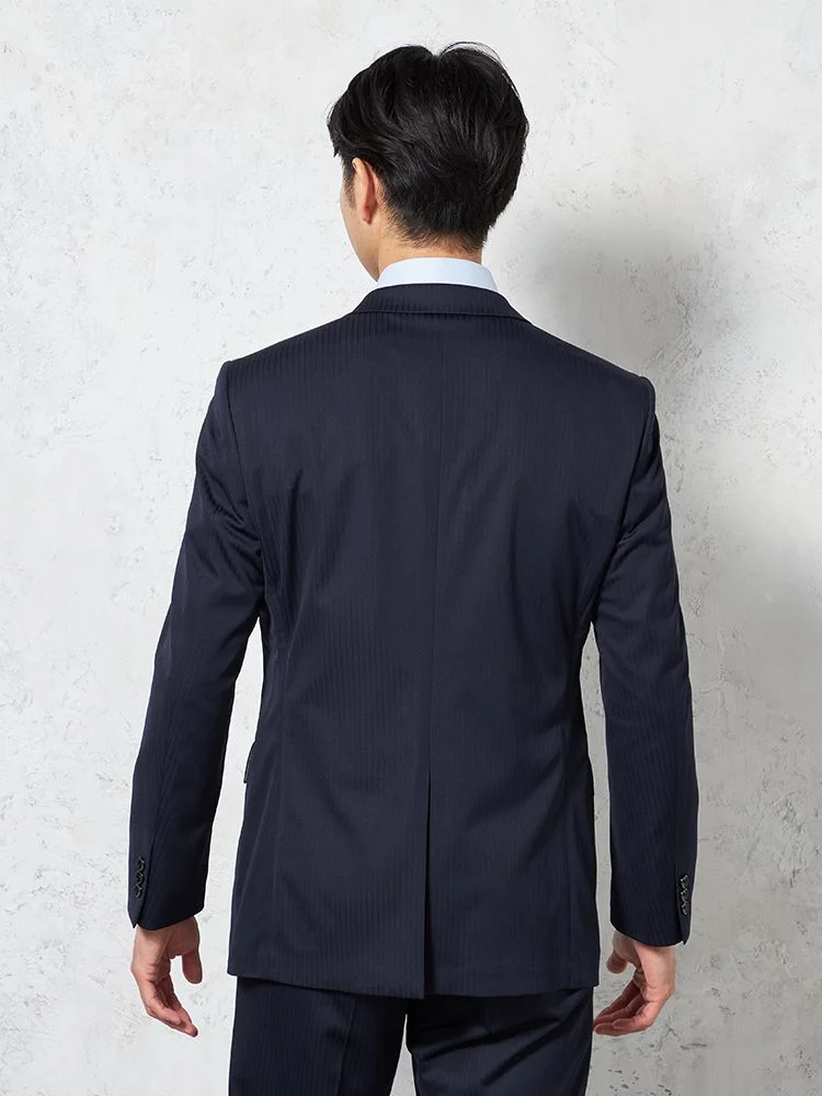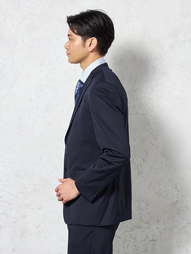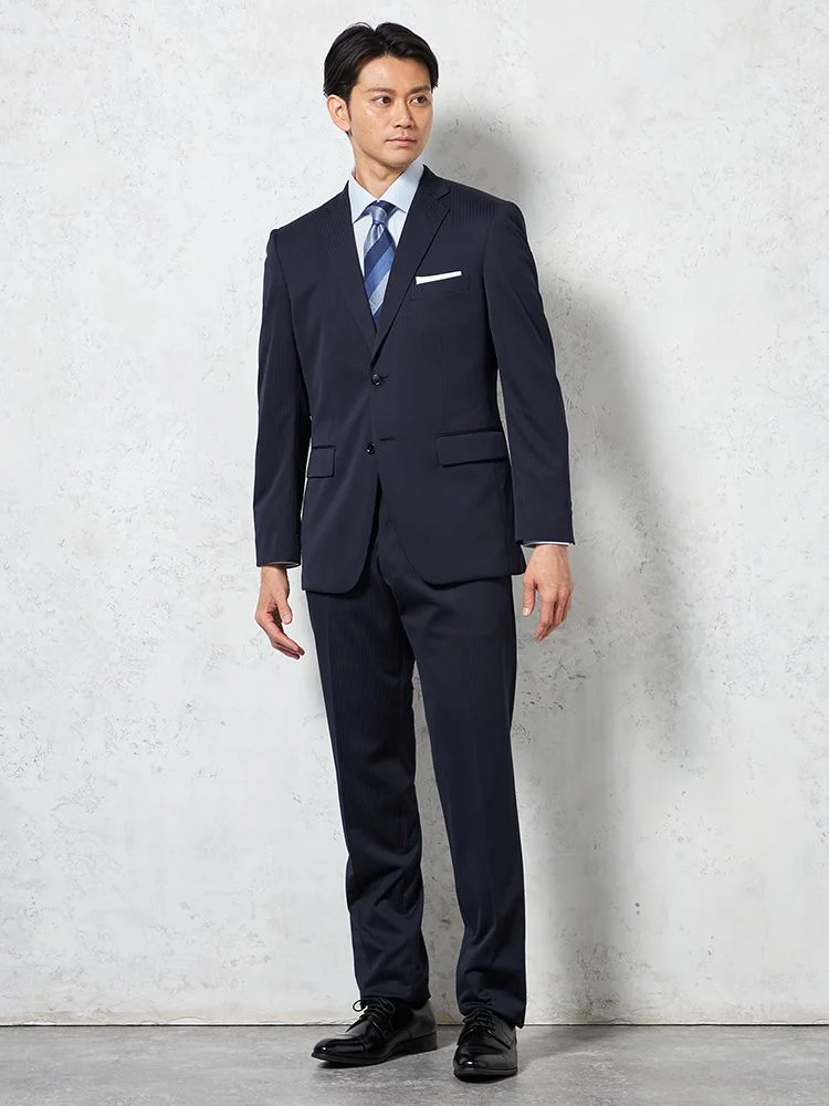 【即納】【WEB限定】スーツ2つボタンネイビーシャドウストライプ上下ウォッシャブル3シーズン対応