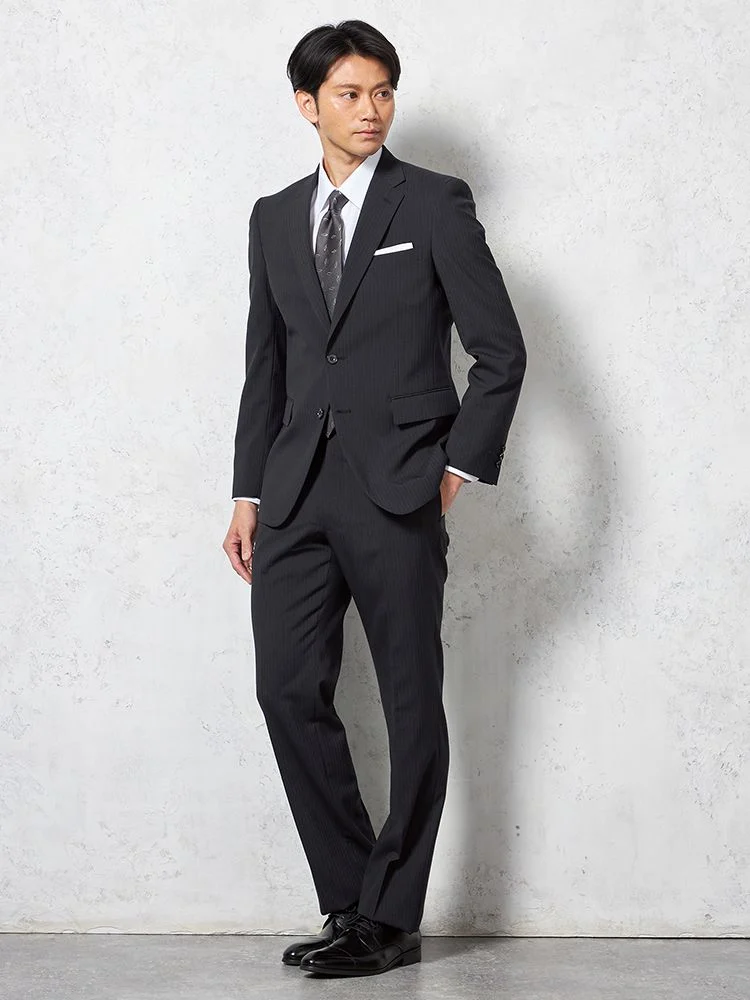 【即納】【WEB限定】スーツ2つボタンブラックシャドウストライプ上下ウォッシャブル3シーズン対応