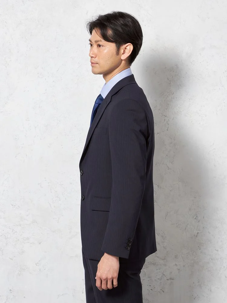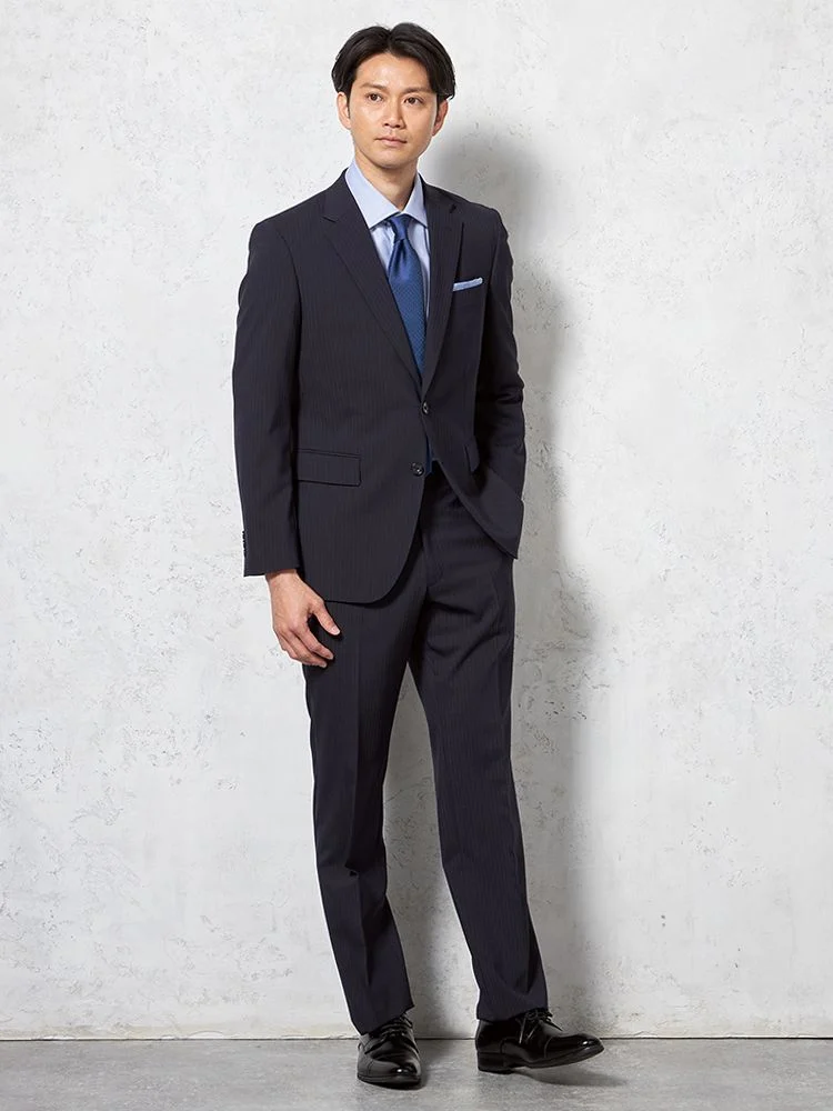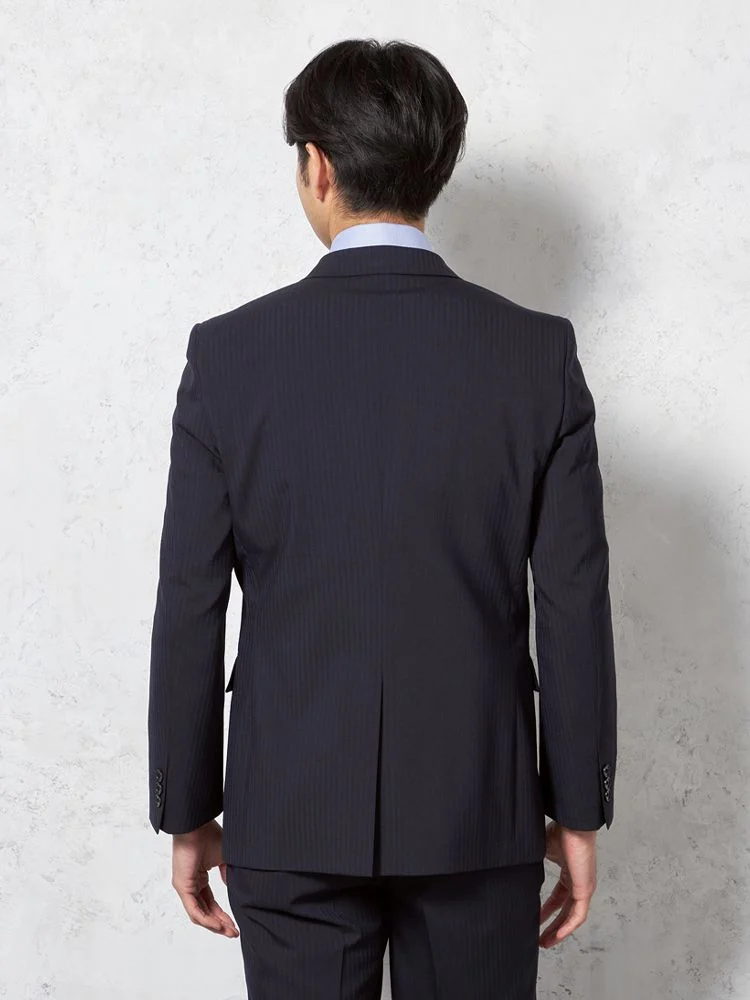 【即納】【WEB限定】スーツ2つボタンネイビーシャドウストライプ上下ウォッシャブル3シーズン対応