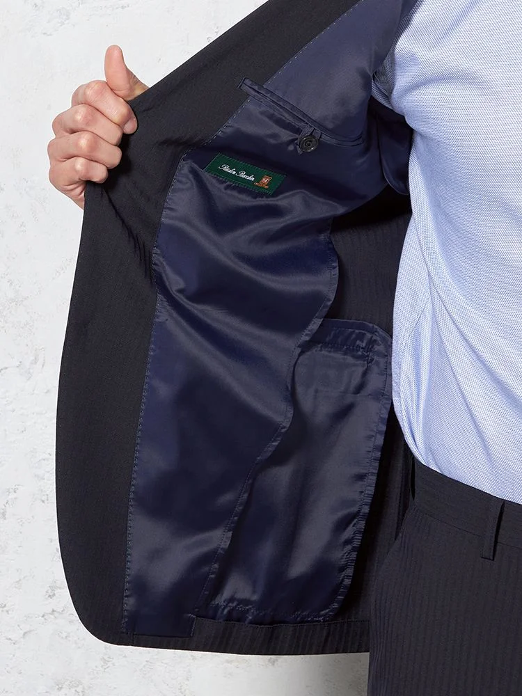 【軽量】スーツ 2つボタン ツーパンツ 上下ウォッシャブル ネイビー シャドウストライプ リッケンバッカー 春夏