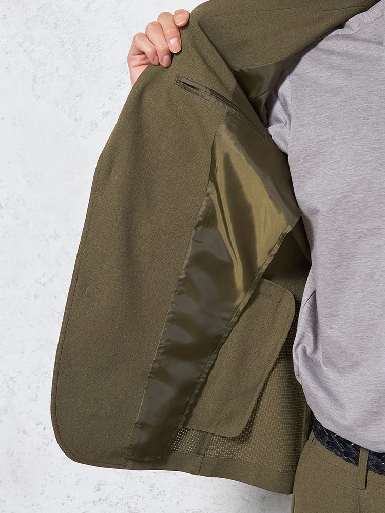 東レ(株)の高通気快適素材「Dot Air-ドットエアー-」を使用した、カジュアルテーラードジャケット。