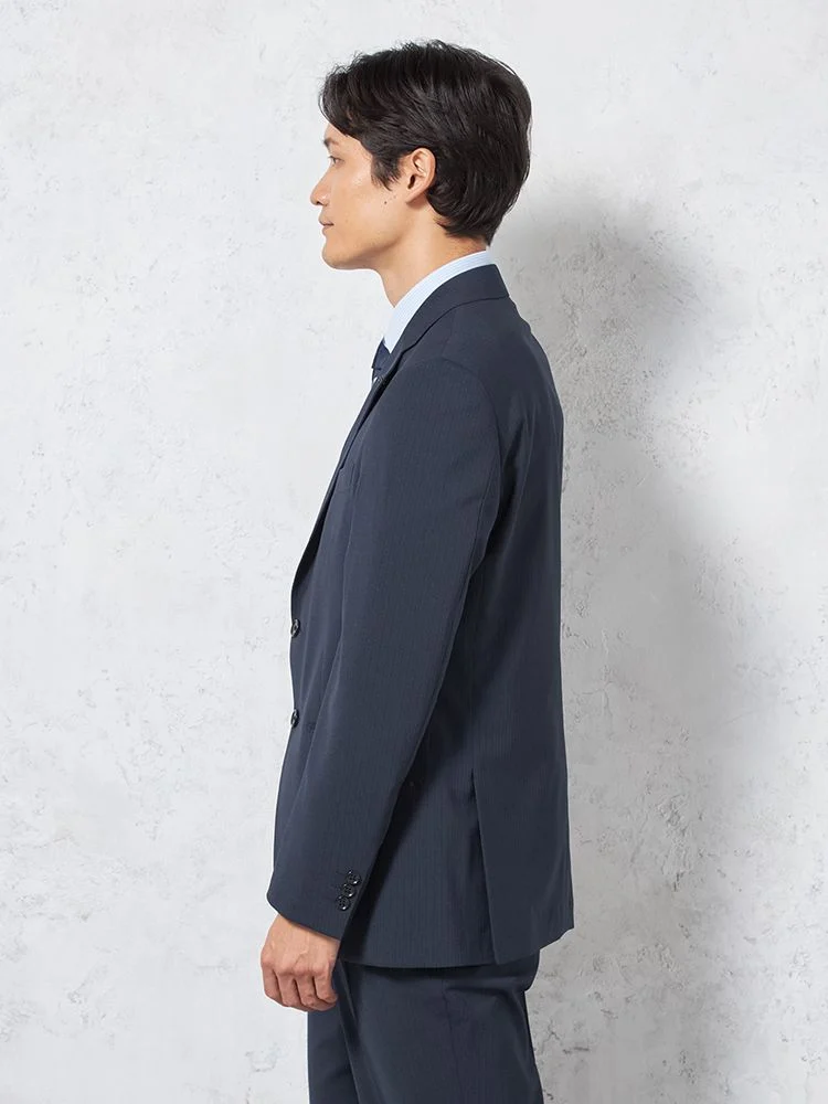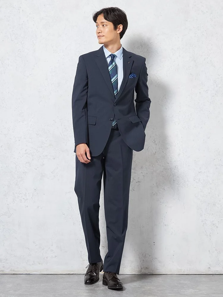 【即納】【WEB限定】スーツ2つボタンネイビーシャドウストライプ上下ウォッシャブル3シーズン対応