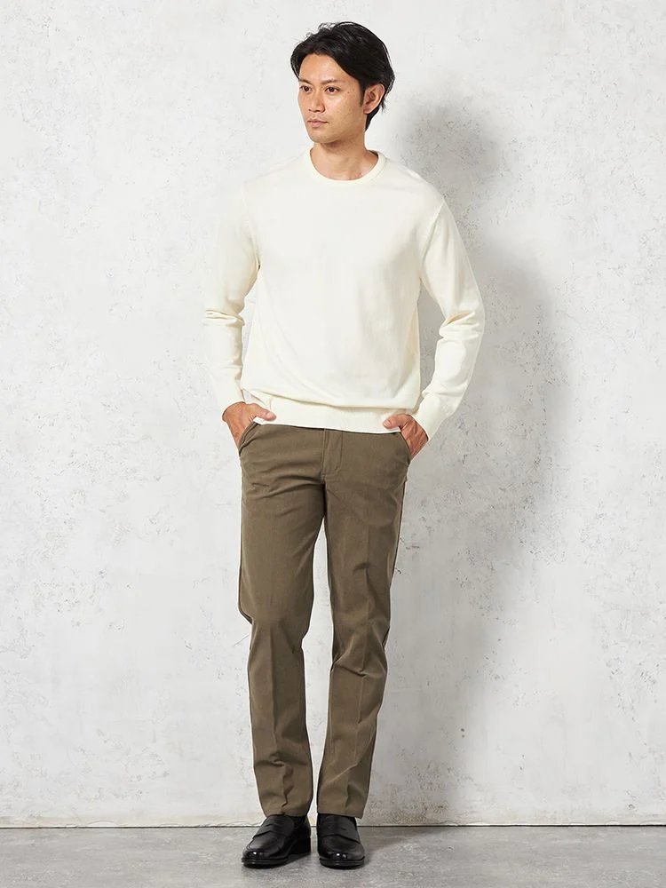 さまざまなコーディネートに合わせやすいシンプルなニットプルオーバー。