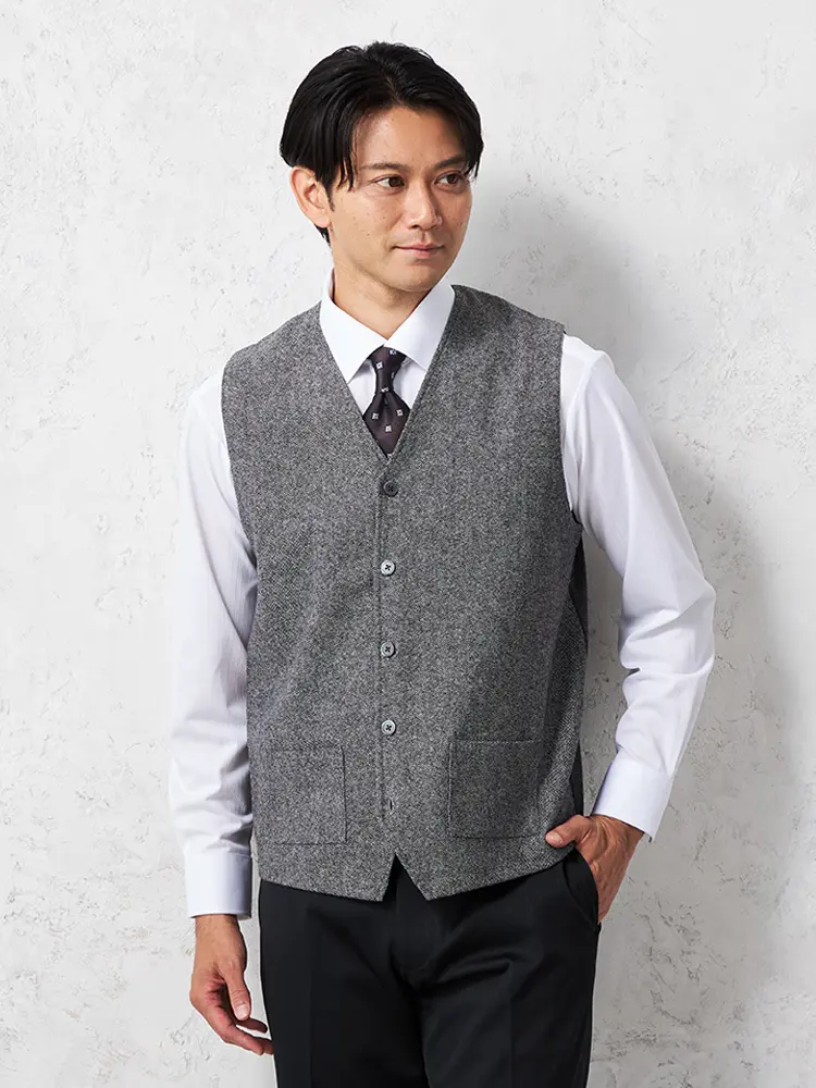 【ウォッシャブル】ミラノリブ前割れベスト放電抗ピリング無地ベストリッケンバッカー秋冬