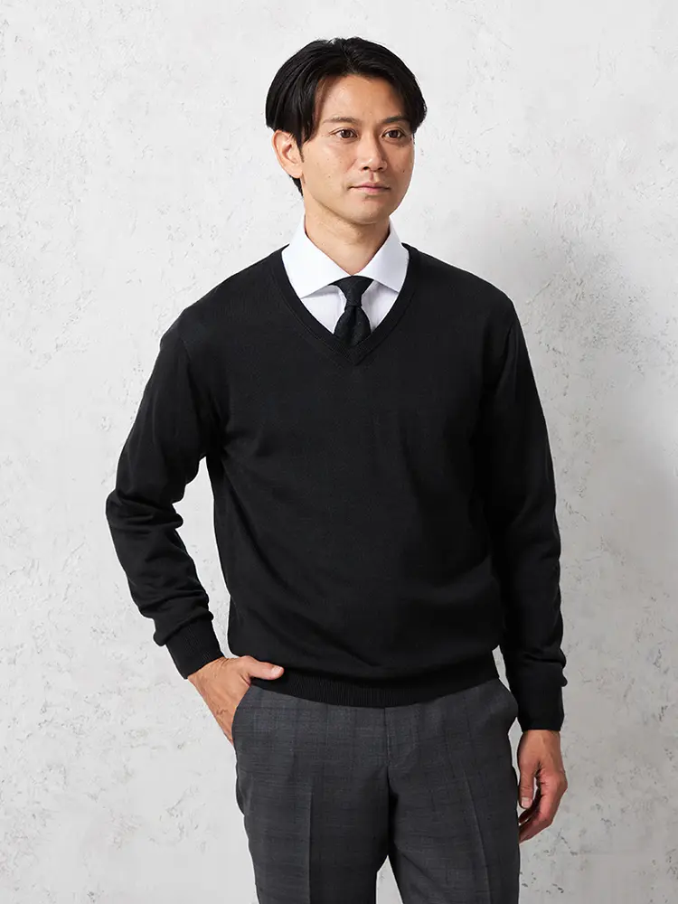【リッケンバッカー】 無地天竺Vネックセーター カジュアルインナー ニット 長袖 保温 秋冬